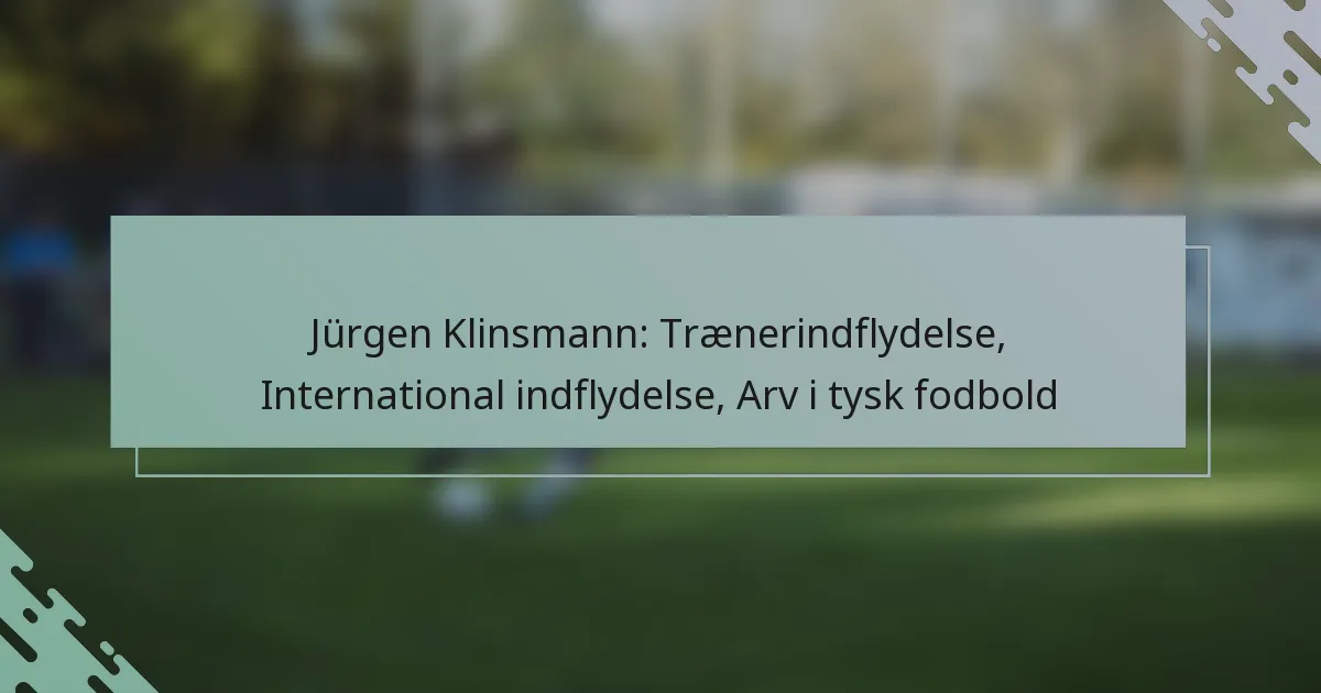 Jürgen Klinsmanns trænerindflydelse i fodbold er præget af hans innovative strategier og fokus på spillerudvikling. Hans tilgang har betydeligt formet moderne træningspraksis, især i tysk fodbold, hvor hans arv fortsat resonerer.