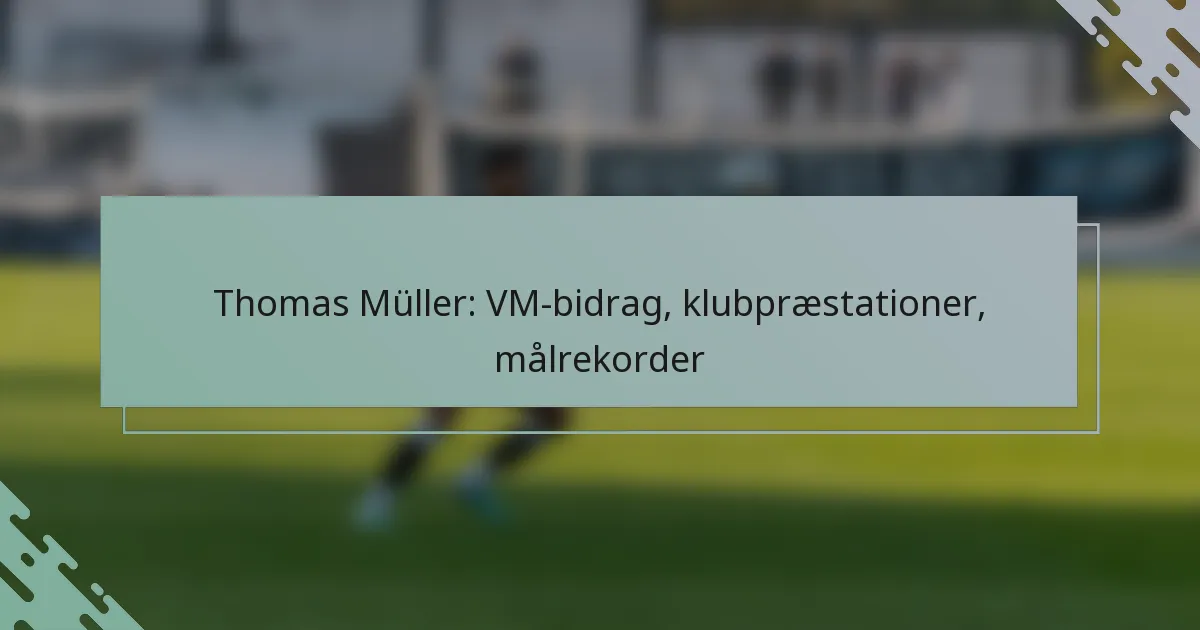 Thomas Müller er kendt for sine exceptionelle målrekorder i både internationale og klubkonkurrencer. Han har opnået betydelige milepæle i FIFA verdensmesterskabet, Bundesligaen og UEFA Champions League, hvilket cementerer hans status som en af fodboldens store.